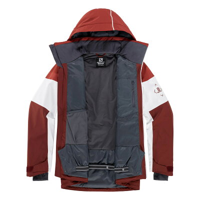 メーカー希望小売価格はメーカーカタログに基づいて掲載しています SALOMON サロモン スキー ジャケット ■SLALOM JACKET M スラロームジャケット REFERENCE:CLOLOR ■LC1587500:RUM RAISIN/WHITE/MADDER BROWN ■LC1587700:EBONY/WHITE/CUMIN ■LC1587800:MALLARD BLUE/WHITE/ BARRIER REE ■LC1587900:BLACK/WHITE/GOJI BERR SIZE S | M | L | XL WEIGHT 950g(M) 類型 インサレーション&ダウン 特性 防水性, 防風性, 撥水処理, 合成素材のインサレーション フィット Active fit テクノロジー AdvancedSkin, PrimaLoft 本体 84% ナイロン, 16% ポリウレタン 本体の切り替え部分 91% ポリエステル, 9% ポリウレタン 裏地 100% ナイロン パッド部 100% ポリエステル ・フード、左腕ICチップポケット、ジップ付きハンドポケット ・手首スノーゲーター、裾ドローコード ※リフト券ホルダーは付属していません。