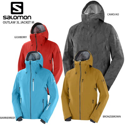 メーカー希望小売価格はメーカーカタログに基づいて掲載しています SALOMON サロモン スキー ジャケット ■OUTLAW 3L JACKET M アウトロー3Lジャケット ■REFERENCE:CLOLOR LC1575500:CAMO/AO LC1575600:BRONZE BROWN LC1575700:GOJI BERRY LC1575800:BARRIER REEF ■SIZE S / JPM M / JPL L / JPXL XL / JP2L ■WEIGHT 732g(M) ■類型 シェル ■特性 防水性, 防風性, 撥水処理 ■フィット Active fit ■テクノロジー AdvancedSkin ■本体 84% ナイロン, 16% ポリウレタン 単独で、または重ね着して、あらゆる天候に対応する OUTLAW 3L シェルジャケット。