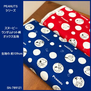 <<PEANUTSシリーズ>> SNランダムドット・スヌーピーランダムドット スヌーピーがいろいろな大きさのドットの中にプリントされた柄です 生地はオックス生地。