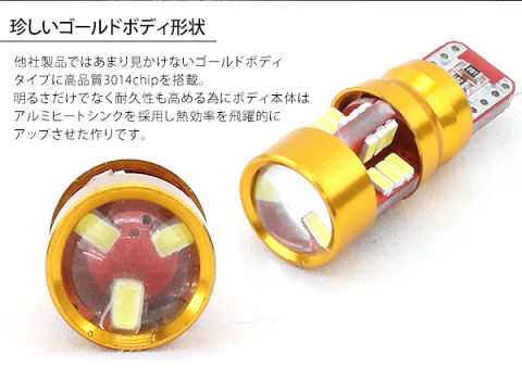 T10/T16 LEDバルブ プロジェクター アルミ製 2個セット 商品説明 ・新型拡散型ゴールドボディT10/T16LEDバルブです。