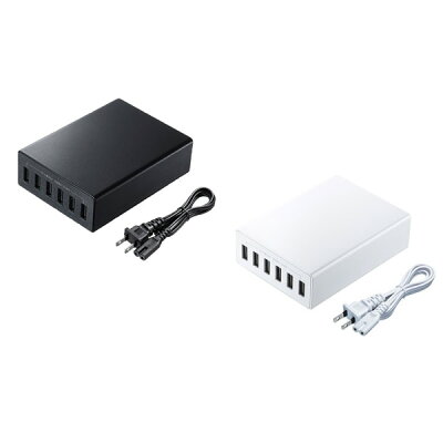 【全2色】サンワサプライ/USB充電器(6ポート・合計12A)ブラック/ホワイト(ACA-IP67)最大6台まとめて充電できる高耐久仕様のUSB充電器 SANWA SUPPLY