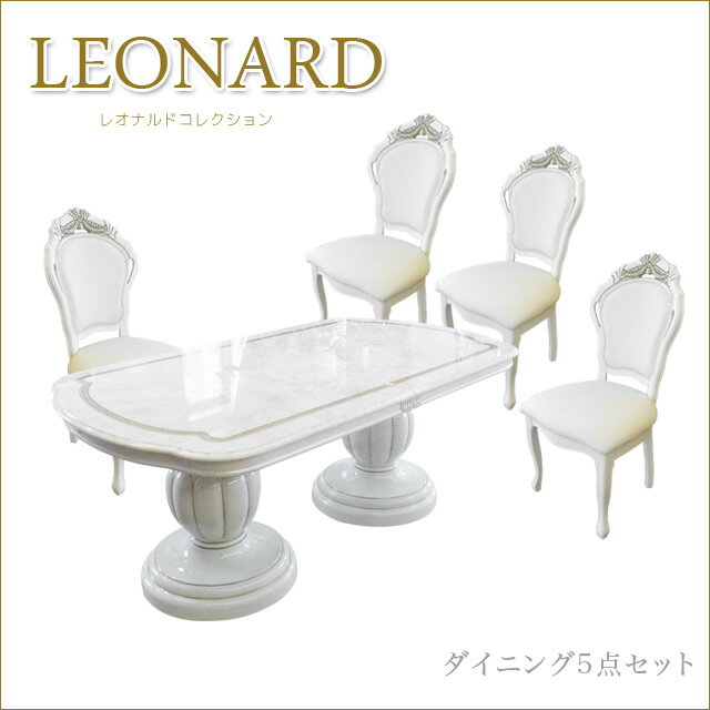 ダイニング5点セット ダイニングセット ダイニングテーブル ダイニングチェア 座面合皮 いす 椅子 イス クラシック家具 姫系インテリア渡辺美奈代愛用