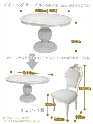 ダイニング5点セット ダイニングセット ダイニングテーブル ダイニングチェア 座面ファブリック 正円形 楕円形 オーバル いす 椅子 イス クラシック家具 姫系インテリア渡辺美奈代セレクト