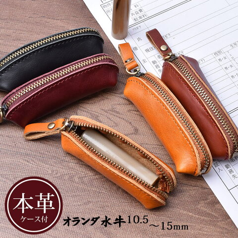 印鑑・はんこ・個人印鑑 【オランダ水牛】 ワンランク上の上質な本革ケース付き 10.5mm/12mm/13.5mm/15mmから選択 女性 実印/銀行印/認印 成人/卒業/結婚/就職/プレゼント/お祝い