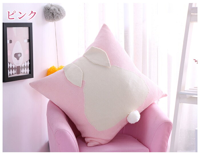【5色】クッションカバー 45×45cm 北欧 可愛い 綿 編み物 モノトーン おしゃれ 柔らかニット 正方形 角型 ピンク グリーン グレー イエロー ウサギ コットン 座布団カバー おしゃれ シンプル パステル 背当て 車用品 ホーム 部屋 インテリア 飾り 雑貨 冬 クリスマス ギフト