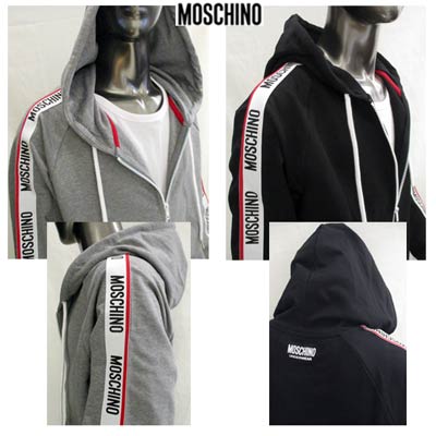 モスキーノ MOSCHINO メンズ トップス パーカー フーディー ロゴ 2color セットアップ着用可(ボトムス別売り) スリーブMOSCHINOロゴ入りジップアップパーカー 黒/灰 1714 8101 555/506 (R44800) 91A【送料無料】 【smtb-TK】