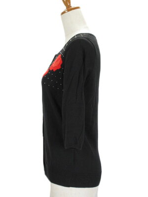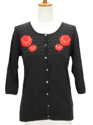 【中古】ビュルデサボン bulle de savon カーディガン ニット 刺繍 ビーズ 七分袖 コットン リネン F 黒 ブラック レディース 【ベクトル 古着】 200209 ベクトルプレミアム店