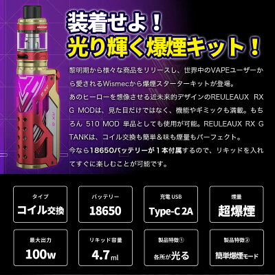 WISMEC ウィズメック REULEAUX RX G Kit 100W ルーロー RX G 18650電池付き | ベプログ 電子タバコ スターターキット ベイプ VAPE ベープ 本体 禁煙 電子タバコ タール ニコチン0 リキッド 電子たばこ