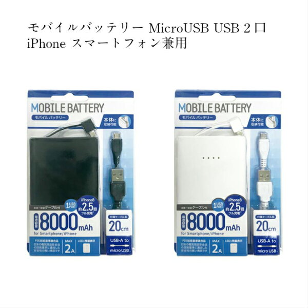 スペック ●サイズ(mm):H 117.0 ×W 68.0 ×D 15.0 ●重量:176g ●出力容量:5100mAh ●電池容量:8000mAh ●出力:5V2A(USB, MicroUSB合計) ●入力:5V2A ●ケーブル長:45mm