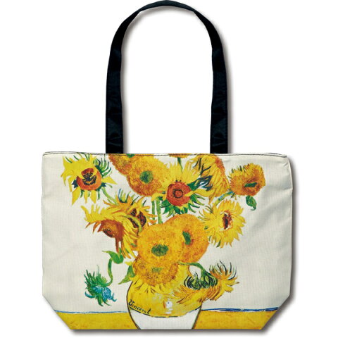【名画】【虹の郷】【美術】名画バッグ ゴッホ「ひまわり(Mサイズ)」 肩から掛けて持ちやすい持ち手が長めのファスナー付きバッグです。