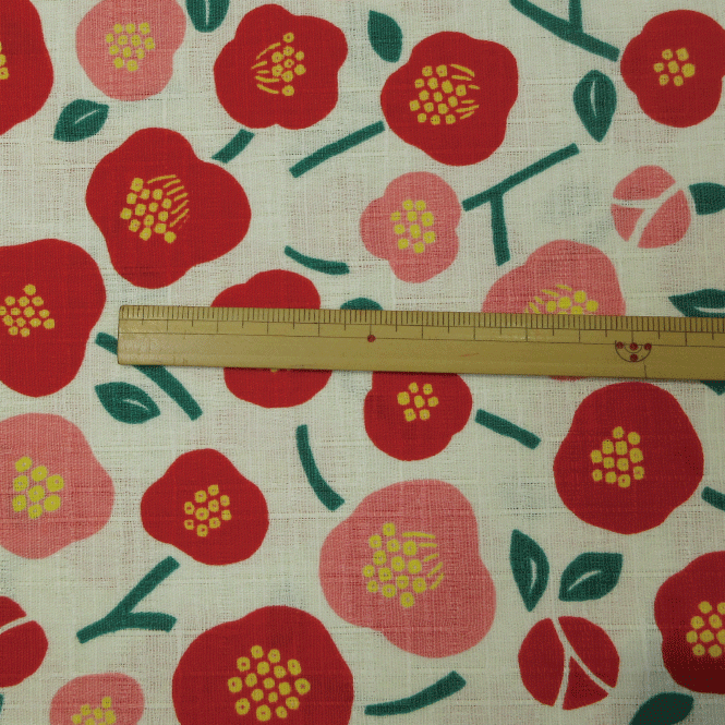 【ドビー生地】椿【和柄 レトロ モダン 生地 花柄 かわいい カラフル 浴衣 甚平 ステテコ ハンドメイド】