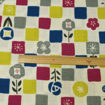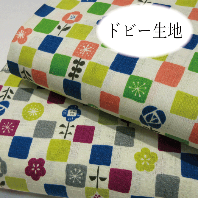 【ドビー生地】花と市松【和柄 レトロ モダン 生地 花柄 かわいい カラフル 浴衣 甚平 ステテコ ハンドメイド】